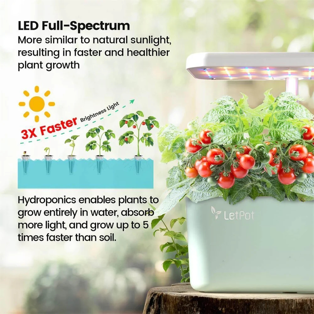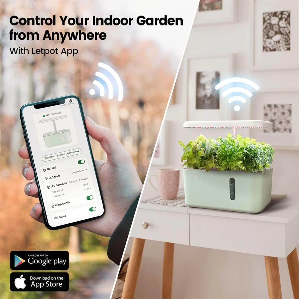 Vsi izdelki podpirajo upravljanje preko aplikacije LetPot ter zaznavanje pomanjkanja vode. Hidroponsko gojenje postane preprosto in učinkovito – rastline rastejo 5-krat hitreje kot v zemlji.